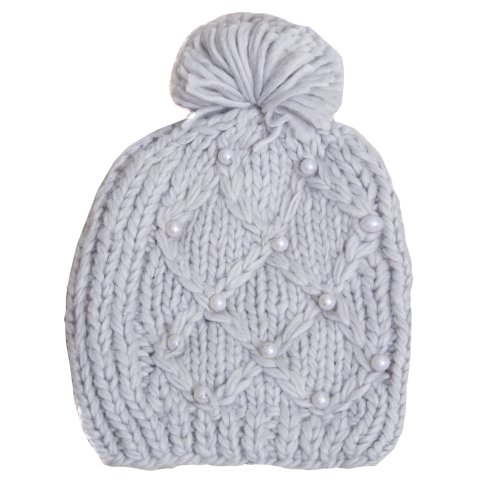 Accessoryo - Mesdames Gris Bonnet Avec Pompon Et Perles Détaillant
