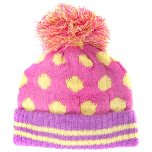 Accessoryo - Tacheté Et Rayé Tricoté Pom Pom Chapeau De Beanie - Onesize S'Adapte À La Plupart
