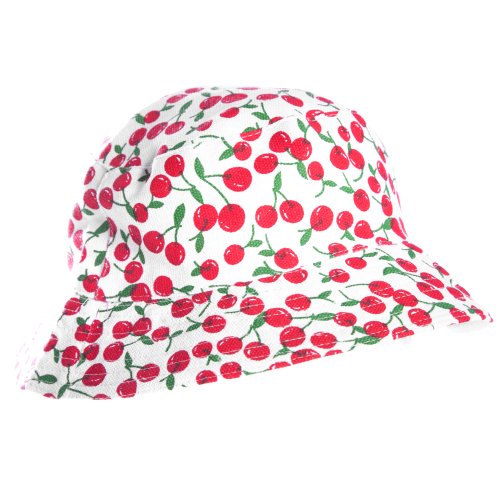 Accessoryo - Dames 58cm Blanc Avec La Conception De Cerise Festival / D'Un Seau Chapeau Rouge