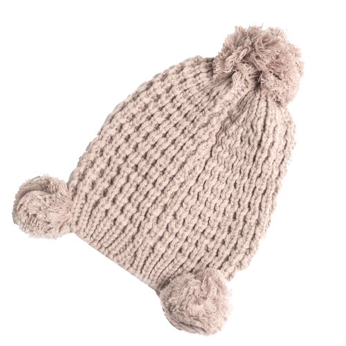 Accessoryo - Dames Cordon Tricoté Beige De Beanie Avec Pompon Et Pompons
