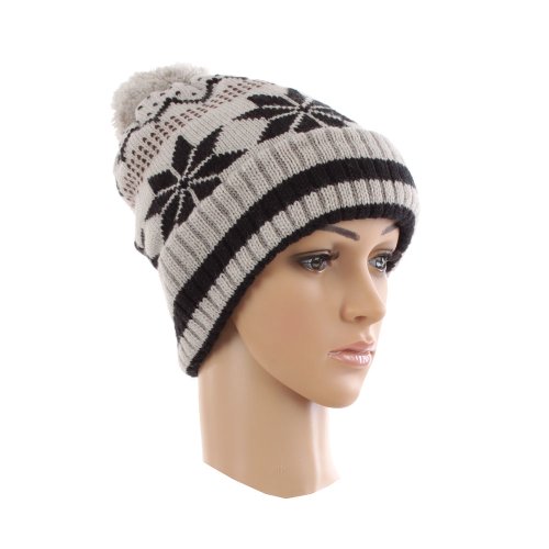 Accessoryo - Flocon De Neige Gris Pom Pom Beanies